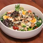 Pechuga en tiras, mix de lechugas, tocino, tomate fresco, huevo duro, palta, champiñones y queso azul