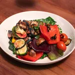 Champiñones, tomates cherry, zanahorias, hojas verdes, morrones, zucchini, betarragas asadas y salsa tonnato