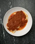 Salsa de tomate con carne, salsa blanca y mozzarella